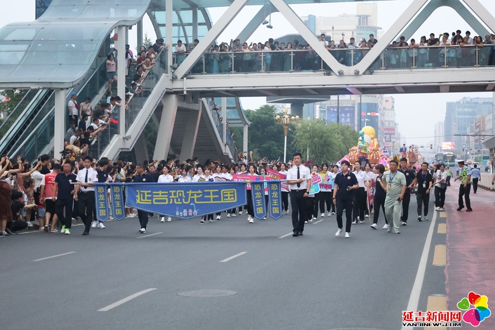 此次花车巡游以人民公园为巡游起点,向西途经延边大学,延展至少年宫。一路上,四辆花车、三大方阵组成巡游队伍,200名演职人员和员工频频与群众挥手致意,在激情的音乐声中,充分展现了延吉恐龙王国的魅力和延边州民俗文化的风采。